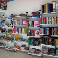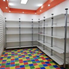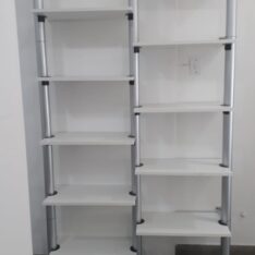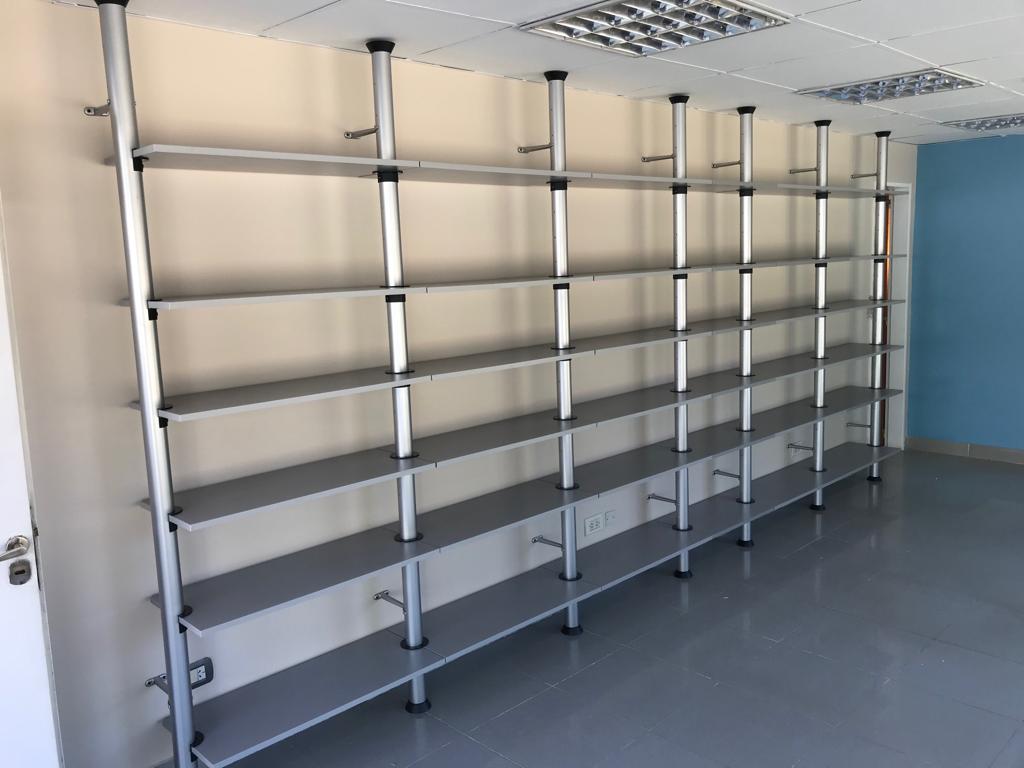 7 columnas de 2,5m de alto con 30 estantes de 85 x 35 y 6 de 60×35